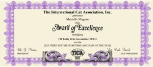 Teddy Brits Gwendolina (future repro) Posted on 27/07/202106/10/2025 by Murielle "Gwendolina de Teddy Brits" British Longhair Bleu Futur reproductrice 20/02/2021 BreederTeddy Brits OwnerChatterie du Domaine Tseyang British Longhair Bleue