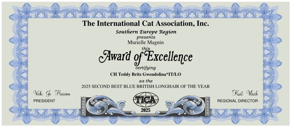 2 ème meilleur tica CHATTERIE DU DOMAINE TSEYANG élevage de British, Scottish CHATTERIE DU DOMAINE TSEYANG élevage de British, Scottish